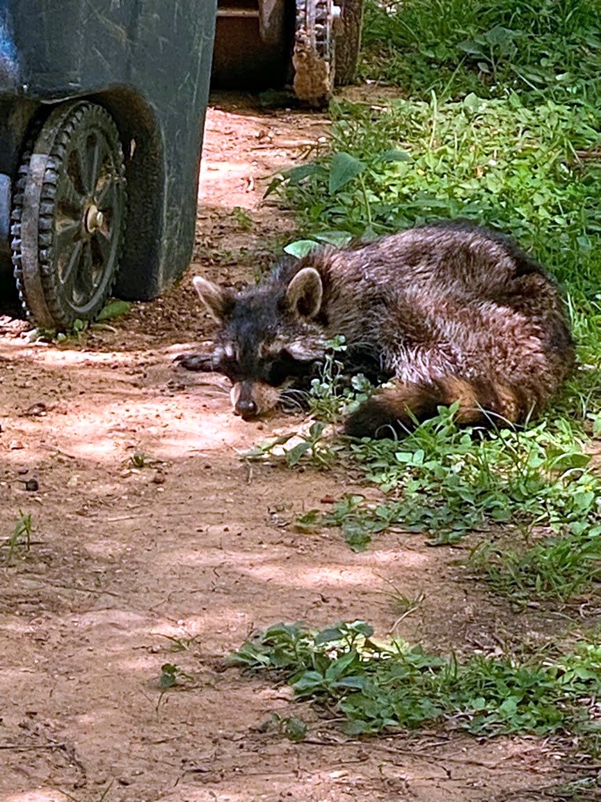2400 Sargent St, Fort WorthThere is a sick raccoon on my property. It won’t leave and i can’t take out my trash because it is there lying by my trash containers. It needs to be removed please.